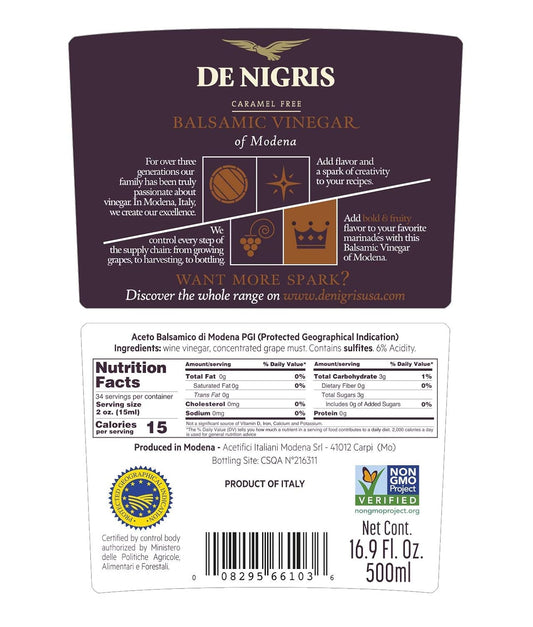35% Grape Must De Nigris Balsamic Vinegar, Bronze Eagle, 16.9 oz - High Quality Italian Vinegar