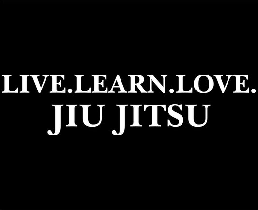 Jiu Jitsu Vinyl Die Cut Decal/Bumper Sticker - Live, Learn, Love - 8 3/4" x 2 1/4" - For Windows, Trucks, Cars, Laptops