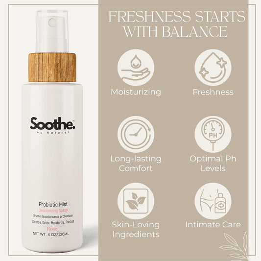 Rose Probiotic Mist Deodorizing Spray for Women - Natural Feminine Deodorant to Control Odor & Itching, Soothing Vaginal Spray with Moisturizing Benefits, 4 oz