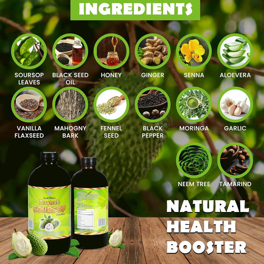 Zaynab Wellness Organic Soursop Bitters Liquid for Gut Cleanse & Immune Support 16 fl oz - Black Seed Oil, Moringa, Garlic & Ginger - Best Soursop Bitter for Overall Wellness
