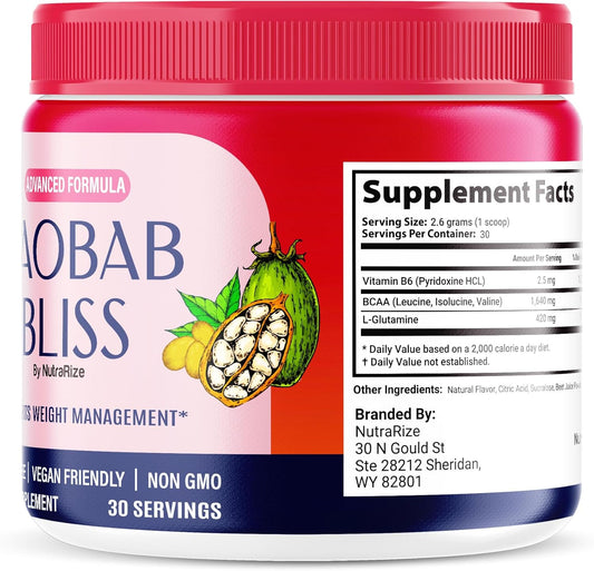 Organic Baobab Bliss Powder Detox for Fitness & Healthy Lifestyle - Pack of 2, All Natural Fiber Supplement, Native African Coffee Secret - 60 Servings