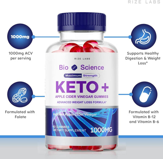 Rize Labs Bio Science Keto Plus Gummies with Apple Cider Vinegar - 240 Gummies for Slimming Formula - Extra Strength Formula