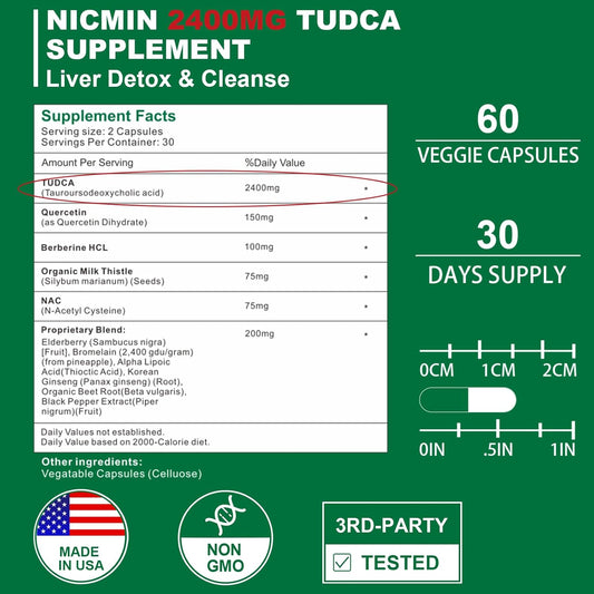 TUDCA Liver Detox & Gallbladder Cleanse Supplement 2400MG, Anti-Aging for Men and Women, Digestive Health - 120 Capsules