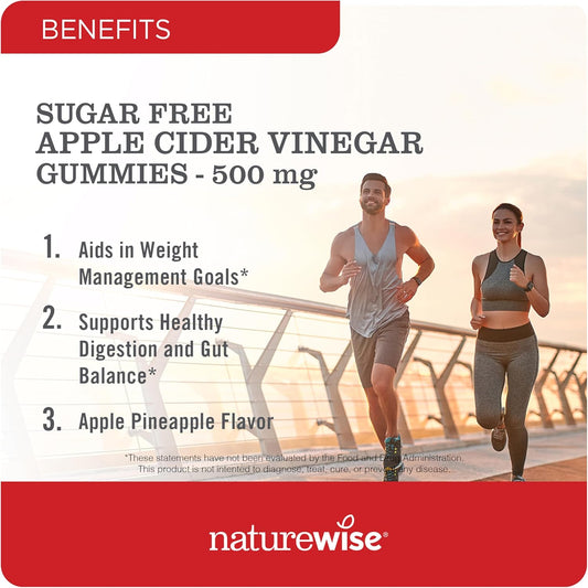 NatureWise Apple Cider Vinegar Gummies with Vitamin B12 - 1000mg ACV, Sugar Free, Vegan, Energy & Gut Health Support - 60 Gummies[1-Month Supply]