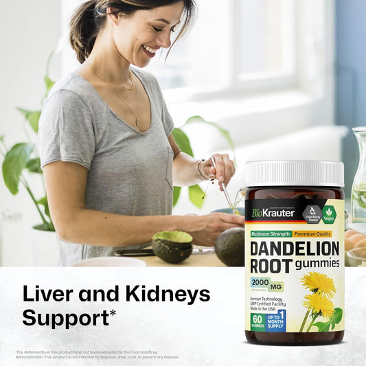 Vegan Dandelion Root Gummies 2000mg - 60 Supplement Chews for Digestive & Liver Support - Gelatine-Free Formula for Vegans