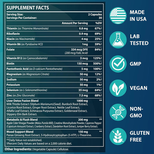 Premium 90,000 MG Detox & Cleanse Capsules for Men & Women - Kidney & Liver Support, Natural Herbal Formula - Fast Acting & Made in USA - 60 Count