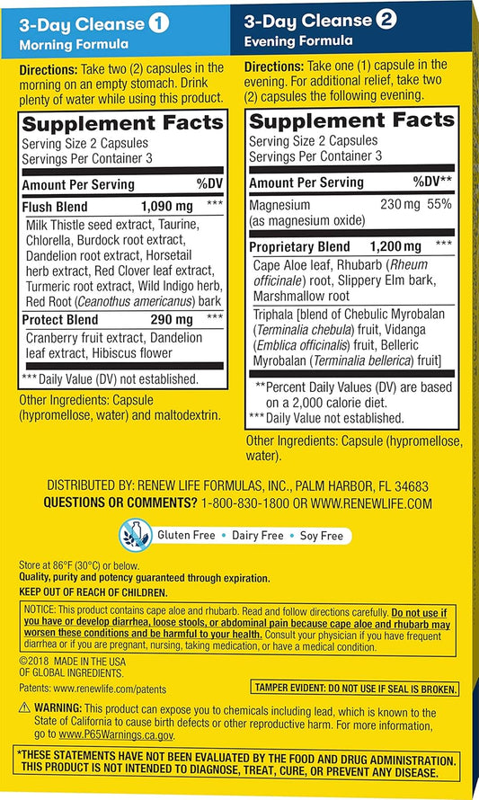 Renew Life Adult Cleanse Total Body Reset - 2-Part 3-Day Program - Advanced Herbal Formula - 12 Vegetarian Capsules - Gluten, Dairy, and Soy Free