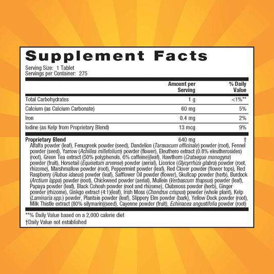 Natural Multi Herb Digestion & Detox Support Tablets - Supports Healthy Digestion, Rejuvenation, and Cleansing with Alfalfa, Dandelion, Fennel, Green Tea, and More - 275 Tablets