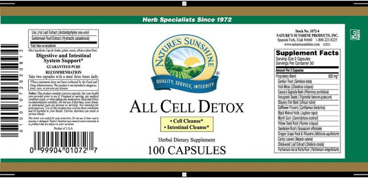 Natural Digestive System Supplement - Nature's Sunshine Cellular Detox, 100 Capsules (Kosher), Herbal Blend for Healthy Bowel Movements