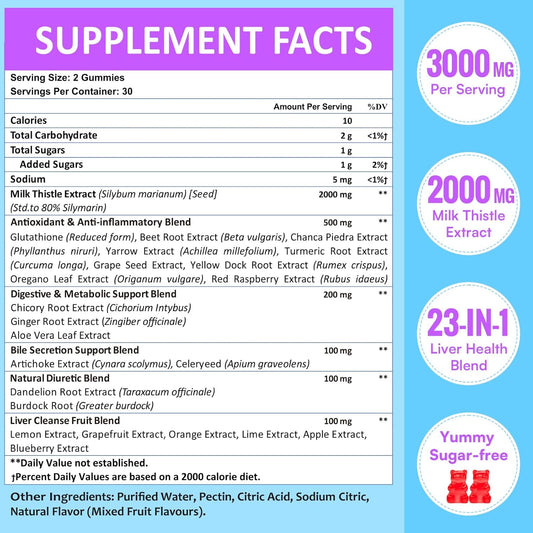 Liver Cleanse Detox Gummies - 3000mg Milk Thistle with Turmeric, Dandelion Root & Artichoke - Liver Support, Antioxidant - Fruit Flavor, 60 Gummies