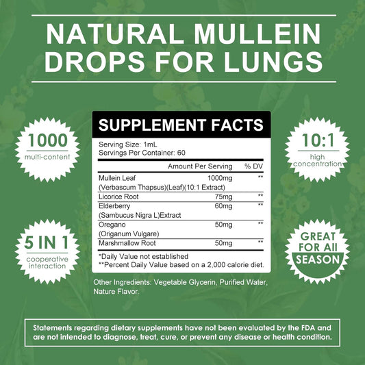 Mullein Leaf Liquid Extract for Lungs - Herbal Drops for Respiratory Health Support - Non-GMO, Vegetarian Formula - 4 Fl Oz