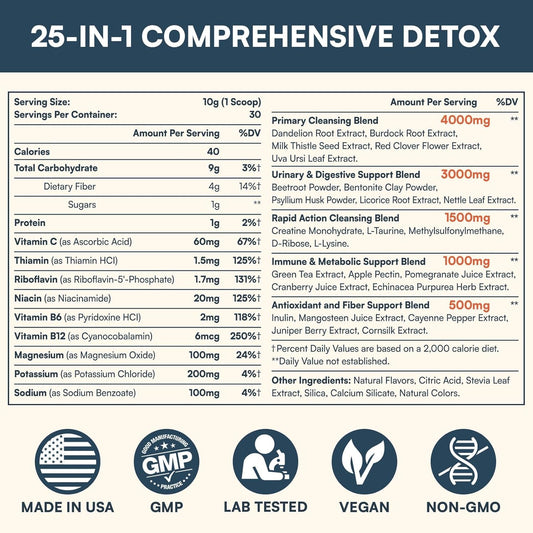 Fast-Acting 10,000 MG Detox Powder Supplement for Liver, Kidney, Digestion & Immune Support - Full Body Cleanse & Repair - 30 Servings
