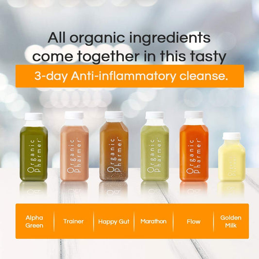 Organic Pharmer 3-Day Anti Inflammatory Juice Cleanse - Alpha Green, Trainer, Happy Gut, Marathon, Flow, Relax - 18 Pack