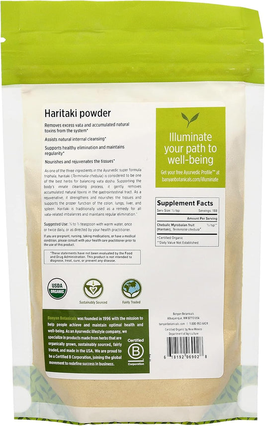 Certified Organic Haritaki Powder - 1lb - Terminalia Chebula - Detox & Rejuvenation - Vegan, Non-GMO, Gluten Free - Fair Trade