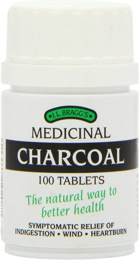100 Tablets of Bragg Charcoal Supplement with 300mg Strength - Natural Detox and Digestive Support Formula