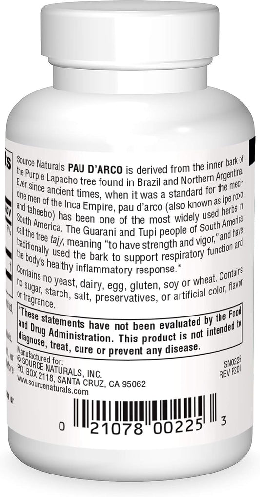Pau D'Arco Dietary Supplement by Source Naturals - 100 Tablets for Immune Support and Overall Wellness