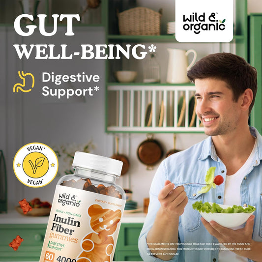 Organic Inulin Fiber Gummies 4000mg - Digestive Support with Chicory Root - Soluble Fiber Supplement with Inulin Powder - Prebiotics for Gut Health - 60 Prebiotic Gummies