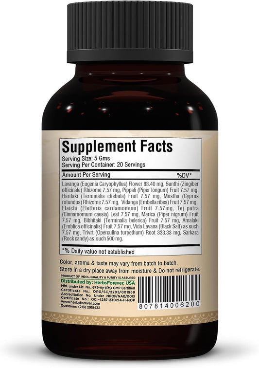 Herbsforever Avipatikar Churna 100g - Ayurvedic Digestive Support, Promotes Healthy Bowel Movement, Non GMO, Vegan