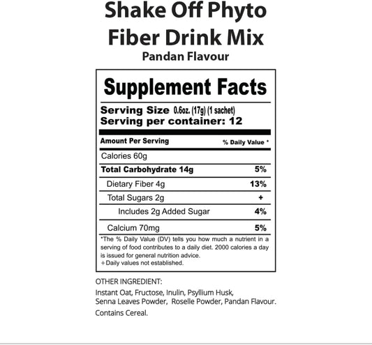Pandan Phyto Fiber Drink Mix - Natural Digestive Support with Plant Fiber, Roselle Berry, Organic Oats, & Garcinia Cambogia - Promotes Digestive Health & Regularity