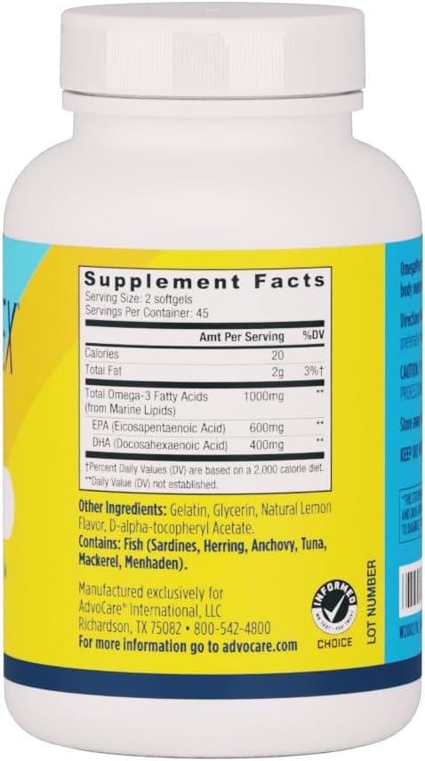 AdvoCare Omegaplex Dietary Supplement - Omega 3 with DHA & EPA - Supports Heart Health, Immune System, and Metabolism - Promotes Healthy Skin, Nails, and Hair - 90 Softgels