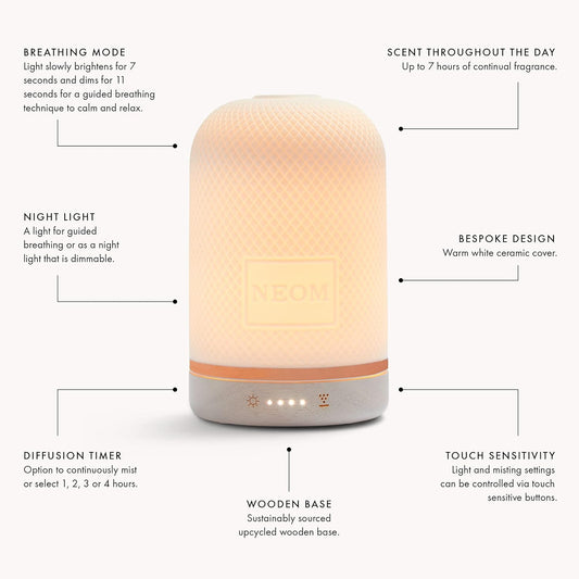 NEOM Ceramic Essential Oil Diffuser with LED Light & Timer - Best for Medium Spaces - Plug-in Aromatherapy Diffuser for Home Fragrance