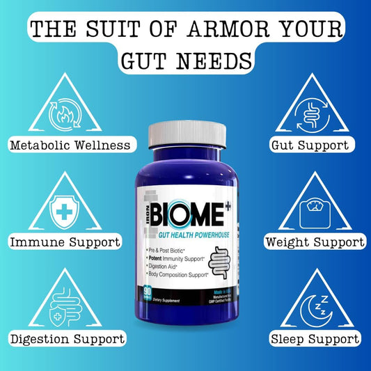 Iron Biome+ Gut Health & Metabolic Support Capsules - TriButyrin, Shilajit, Prebiotics, Nutrients - Digestive Wellness, Immune Function, Sleep - 90 Count - USA Made