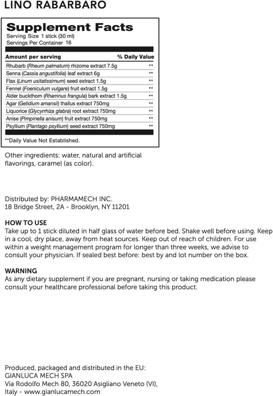 Gianluca Mech Keto Rhubarb Flax Regulating Tonic Sticks - Diuretic Food Supplement (16x30ml)