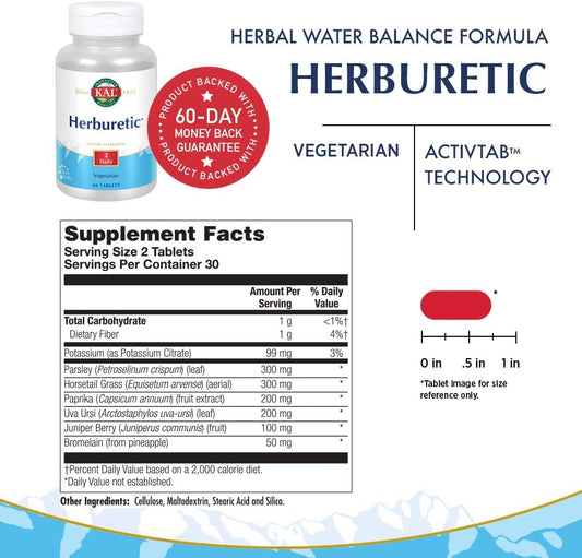 Natural Diuretic Supplement Tablets, 60 Count - KAL Herburetic Formula