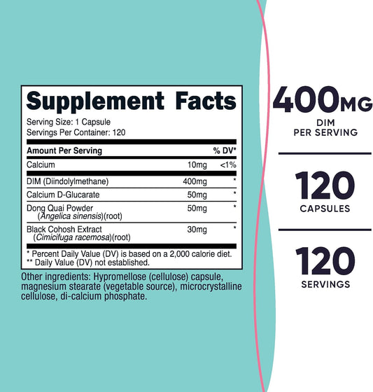 Women's DIM Supplement 400mg with Dong Quai, Calcium & Black Cohosh - 120 Capsules, Vegan, Non-GMO, Gluten Free by Nutricost
