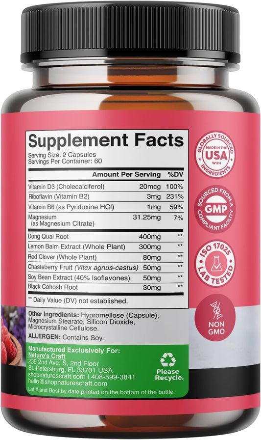 Menopause Support Complex with Wild Yam Root, DIM, Chasteberry, Dong Quai, Maca Root, Evening Primrose Supplement