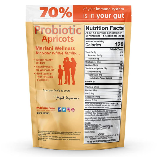 Gluten Free Vegan Mariani Probiotic Dried Apricots - No Preservatives, Healthy Snack for Kids & Adults, 6oz