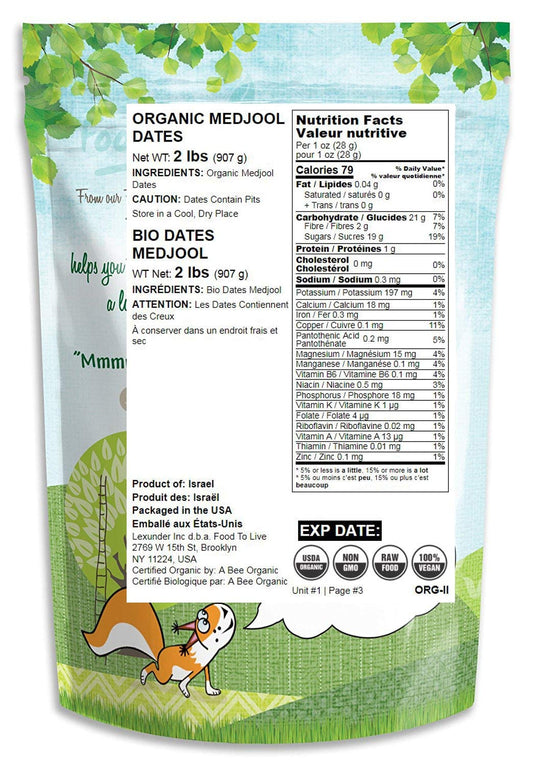 Organic Medjool Dates - 2 lbs Whole Dried Dates with Pits, Large Size, Unsweetened, Non-GMO, Vegan - Sirtfood, Bulk Pack.