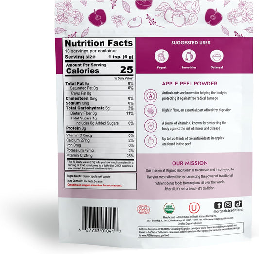 Organic Traditions Apple Peel Powder - Vegan Non-GMO Fruit Powder - 3.5oz (100g)