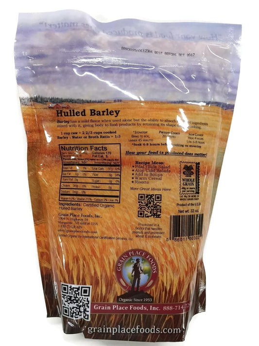Organic Non-GMO Hulled Barley - 2 lb Bag - Made in the USA by Grain Place Foods