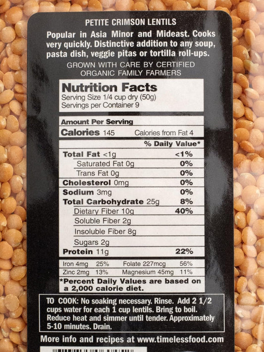 Organic Petite Crimson Lentils from Montana - 2 Pack (454g/16oz Each) - Timeless & Natural - 100% Certified Organic