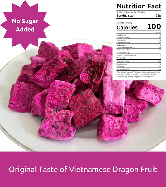 Vietnam Freeze Dried Dragon Fruit Cubes 8.0 Oz - Natural Red Pitaya Snack, No Added Sugar - Non GMO, Gluten Free for Drinks, Cereal, Yogurt