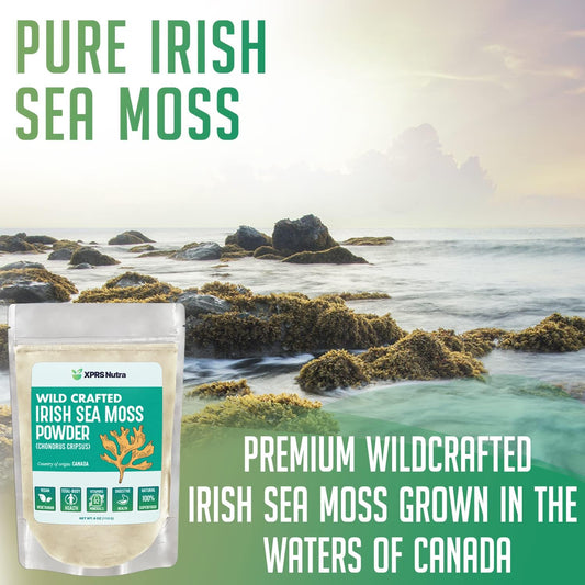 Premium Wildcrafted Irish Sea Moss Powder for Glowing Skin & Total Body Health - Vegan Friendly Seamoss Drink Powder (16 oz)