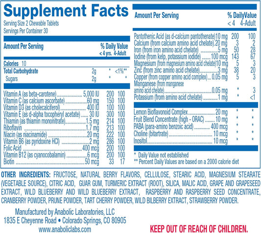 AVED Kids Multivitamin with Iron - 60 Chewable Tablets for Kids with Vitamins A, B, C, D, E, Iron, Calcium, Magnesium, and Zinc - Natural Berry Flavor