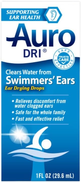 Del Pharmaceuticals Auro-Dri Ear Water-Drying Aid - 1 fl oz (29.6 ml) - Fast Relief for Wet Ears and Swimmers - Gentle Formula for Quick Drying