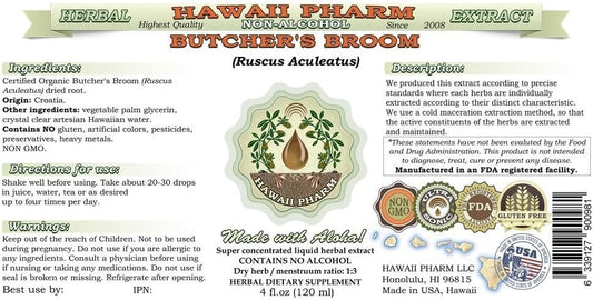 Organic Butcher's Broom Liquid Extract - Alcohol-Free Herbal Supplement - 4 oz Bottle by Hawaii Pharm