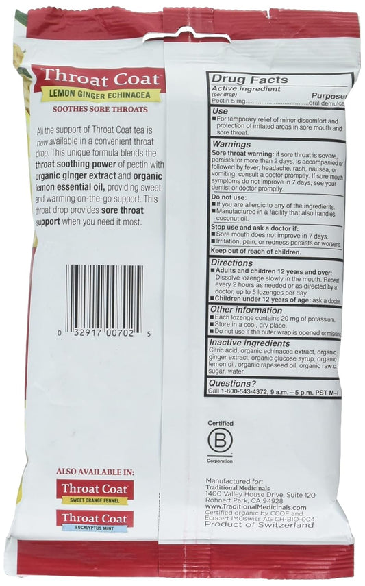 Pack of 12 Traditional Medicinals Lemon Ginger Echinacea Lozenges - 16 Pieces