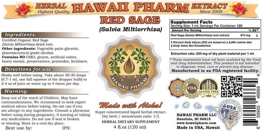 Red Sage Liquid Extract Tincture, Herbal Supplement, Made in USA - 2 fl.oz by HawaiiPharm