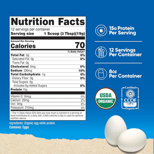 Organic Egg White Protein Powder (Unflavored) - 8oz, 15g Protein/Serving, GMO-Free, Gluten-Free by Nutricost