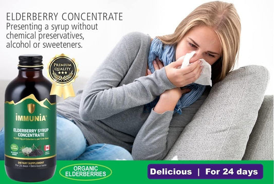 Elderberry Syrup with Elderflower, Thyme, Peppermint - Immune Boosting Formula, No Added Sugar, Delicious Taste - 24 Day Supply