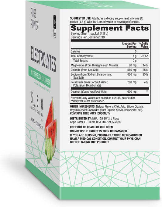 Mercola Pure Power Electrolytes Watermelon Cucumber Flavor - 30 Servings (5.13 oz) - 0g Sugar Per Serving