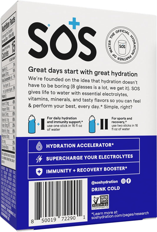 SOS Hydration Electrolyte Powder Packets, Mixed Berry Flavor, 8 Sticks - Low-Cal, Fast Rehydration, USA Made, Keto & Vegan Friendly