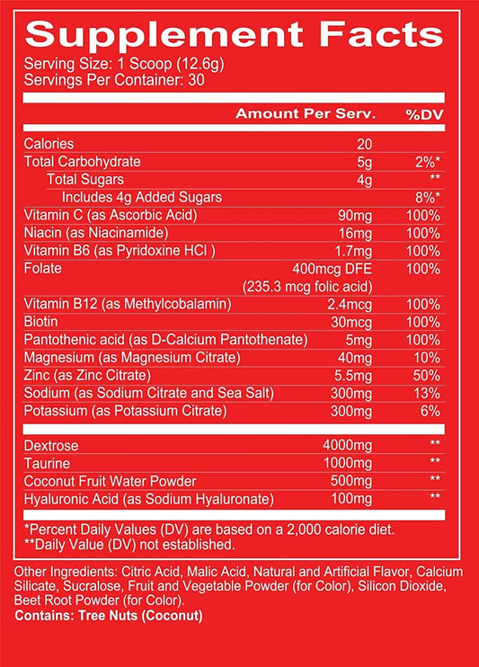 Plum Fusion Electrolyte Drink Powder with B Vitamins and Minerals for Recovery - Hydration and Electrolytes Powder with Coconut Water and Hyaluronic Acid (30 Servings)