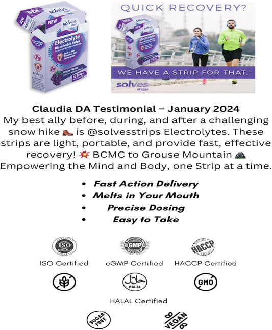 Sugar-Free Grape Burst Electrolyte Replacement Strips - High Potency Hydration for Gym & Outdoor Activities - 10 Portable Single-Serve Packs