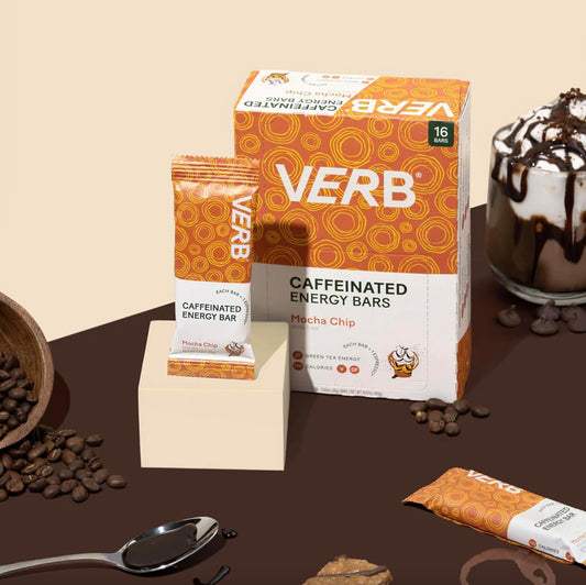 Verb Energy Bars - Mocha Chip Caffeinated Snack Bars, 110 Calories, Low Sugar, Organic Green Tea - Pack of 16