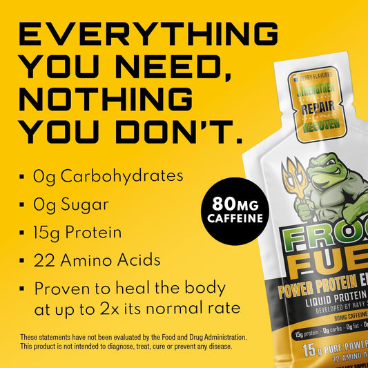 Bundle: Frog Fuel Power Protein & Pre Workout Shots, 1500mg Beta Alanine, 15g Collagen, Grass-Fed, 1.2 oz Packets, 48 Pack - Energized for Pre & Post Workout